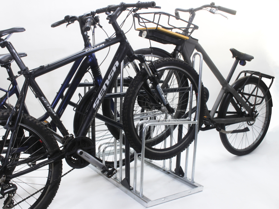 Onze systemen bieden stabiele stallingsplaatsen met goed bereikbare aanbindmogelijkheden (RAL7016). De slimme vormgeving voorkomt schade aan remschijven, terwijl kratfietsen comfortabel en stabiel gestald kunnen worden. De modulaire opbouw zorgt voor optimale ruimtebenutting en maakt uitbreiding eenvoudig. Bovendien is het systeem compact te verzenden, waardoor het een uitstekende prijs-kwaliteitverhouding biedt.